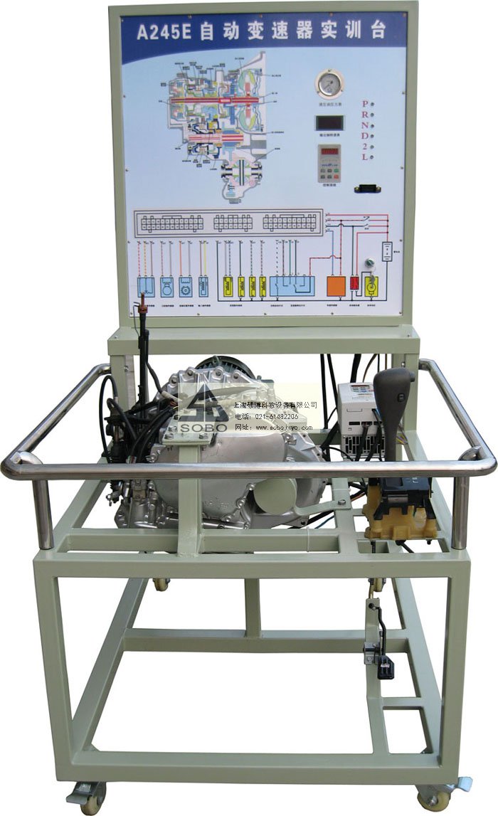 本變速器實訓(xùn)臺是本公司采用一汽豐田自花冠動變速器為適應(yīng)汽車教學(xué)需求而研制的,該實訓(xùn)臺由電控變速器(八成新)、操作顯示面板及發(fā)動機(jī)彩色電氣原理圖電腦控制柜、可移動式臺架(萬向腳輪)、驅(qū)動系統(tǒng)(腳踏式油門踏板)變頻電機(jī)驅(qū)動、剎車系統(tǒng)(腳踏液壓盤試剎車)、啟動系統(tǒng)(電門鎖方式啟動)、車速傳感器、電磁閥執(zhí)行器、原車電腦、具有發(fā)動機(jī)運轉(zhuǎn)及顯示(轉(zhuǎn)速.車速.檔位)、液壓油壓力顯示表(顯示換檔過程油壓)、自動變速器電磁閥工作指示LED燈、原車OBD-Ⅱ診斷座、故障設(shè)置區(qū)可設(shè)置12路故障(老師設(shè)置任一路線路故障)、故障排除區(qū)(學(xué)生通過各種儀器、儀表、)在面板上用專用排故線連接排除故障、傳感器信號模擬等多項功能、具結(jié)構(gòu)緊湊、操作方便、安全可靠、教學(xué)直觀、是汽車自動變速器實物教學(xué)不可缺少的實驗室設(shè)備之一。