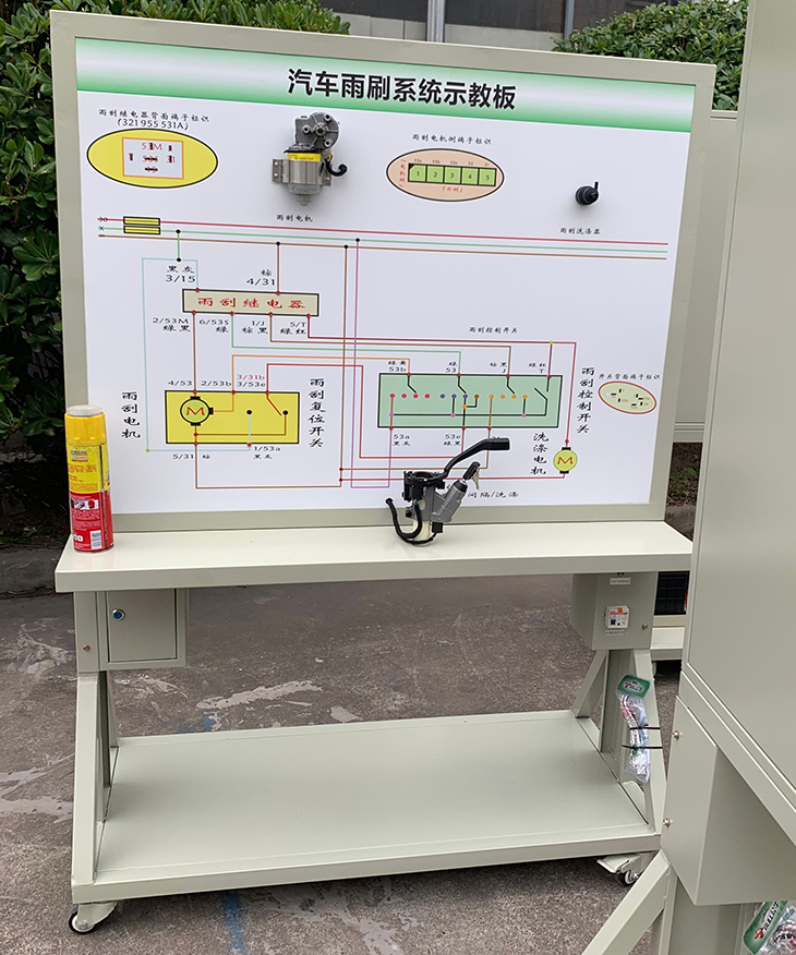 2.示教板面板采用耐創(chuàng)擊、耐污染、防火、防潮的高級鋁塑板,表面經特殊工藝噴涂底漆處理;學校學員可直觀對照電路圖和實物,認識和分析汽車雨刮和清洗系統(tǒng)的工作原理。