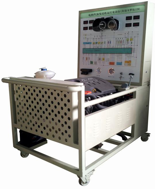 該設(shè)備采用翻新豐田卡羅拉1ZR電控汽油發(fā)動機(jī)總成及運(yùn)行附件的固定臺架和運(yùn)行檢測控制面板臺架兩部分組成。