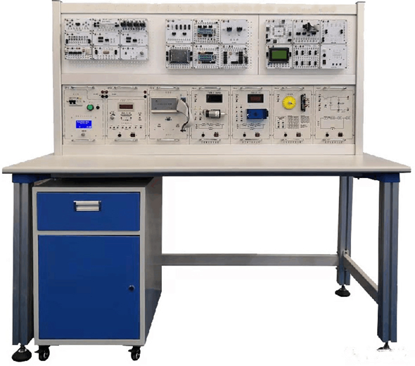 實訓臺主要有實訓桌和實訓臺架組成,實訓桌采用型材結構,桌腿采用4080型材,桌面為防火、防水、耐磨高密度板,結構堅固,造形美觀大方。面板采用鋁板結構,操作面板文字符號用現(xiàn)代彩色噴描技術處理,具有防塵、美觀、耐磨、不掉色等特點。