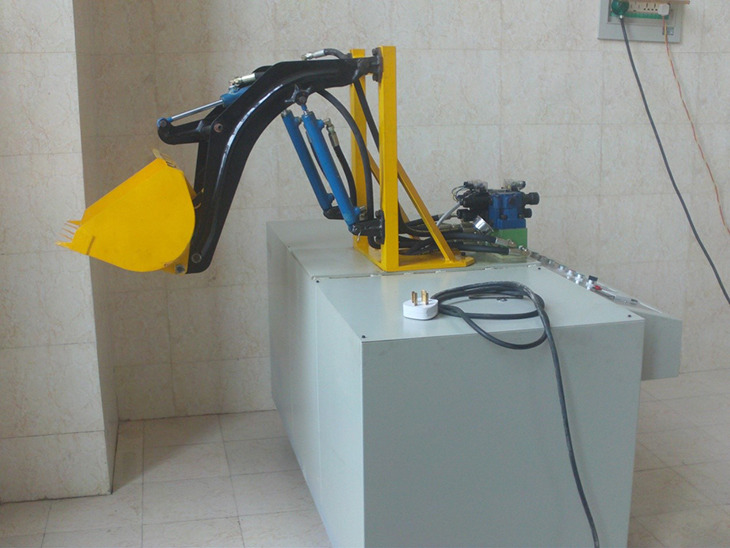 3、裝載機(jī)械按實(shí)物比例縮小的全金屬結(jié)構(gòu),實(shí)驗(yàn)時(shí)啟動(dòng)液壓系統(tǒng)根據(jù)實(shí)驗(yàn)要求模以操作機(jī)械進(jìn)行工作。