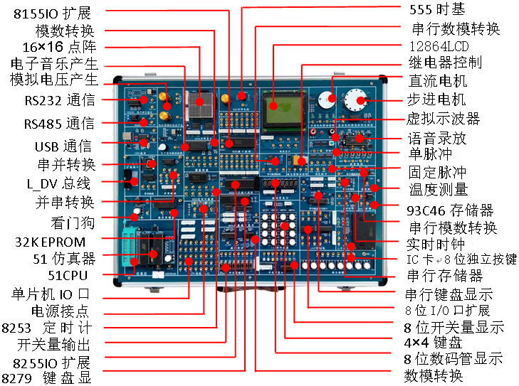 單片機(jī)技術(shù)實訓(xùn)設(shè)備,單片機(jī)原理與應(yīng)用實驗裝置、單片機(jī)實訓(xùn)室設(shè)備建立的初衷是為加強(qiáng)學(xué)生的實踐動手能力,培養(yǎng)既能編寫程序又能設(shè)計電路,既能設(shè)計又會維護(hù)的電子設(shè)計技能人才。單片機(jī)技術(shù)實訓(xùn)設(shè)備,單片機(jī)原理與應(yīng)用實驗裝置承擔(dān)電子信息工程學(xué)院電子信息工程技術(shù)專業(yè)、應(yīng)用電子技術(shù)專業(yè)、現(xiàn)代移動通信技術(shù)專業(yè)、物聯(lián)網(wǎng)技術(shù)專業(yè)的相關(guān)課程的實驗、實訓(xùn)教學(xué)。