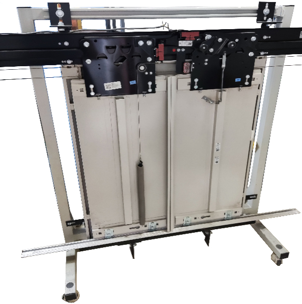要求該裝置至少由鋼結(jié)構(gòu)框架、層門等部件組成。按電梯開門方式的不同,設(shè)備至少分為中分門跟旁開門兩種類型。整體外觀要求簡潔、實用,能夠直觀地看到層門機(jī)構(gòu)的全部器件及整個機(jī)械動作過程。