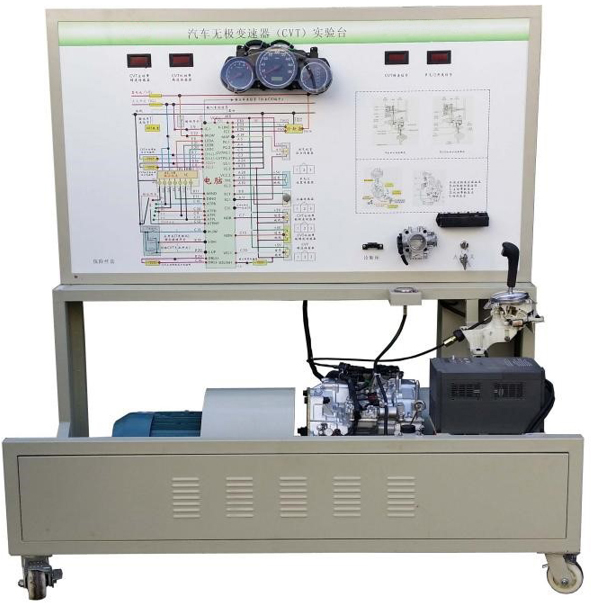 該設(shè)備采用翻新本田飛度電控?zé)o級(jí)變速器總成為基礎(chǔ),用可調(diào)速三相異步電動(dòng)機(jī)做動(dòng)力源,可對(duì)無級(jí)變速器進(jìn)行檔位顯示、空檔起動(dòng)、前進(jìn)檔及倒檔運(yùn)行等工況實(shí)踐操作。真實(shí)展示無級(jí)變速器組成結(jié)構(gòu)和工作過程;