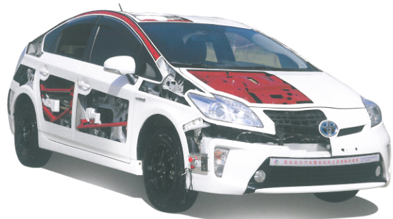 車身解剖部位:對半解剖,副座側(cè)2車門內(nèi)外解剖(運(yùn)行件外可觀察);前蓋對對半解剖(外可觀察電機(jī)與變速器運(yùn)行);后蓋對對半解剖(外可觀察行李箱內(nèi)部器件);前后保險桿對半解剖;