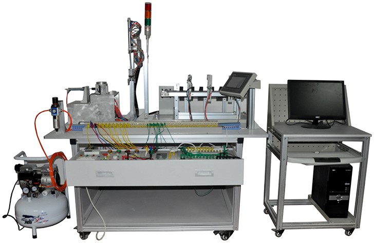 本設(shè)備主要包括實(shí)訓(xùn)臺架、典型的機(jī)電一體化設(shè)備的機(jī)械部件、PLC模塊、變頻器模塊、按鈕模塊、電源模塊、模擬生產(chǎn)設(shè)備實(shí)訓(xùn)模塊、接線端子排和各種傳感器等組成。整體結(jié)構(gòu)采用開放式和拆裝式,實(shí)訓(xùn)裝置用于機(jī)械部件組裝,可根據(jù)現(xiàn)有的機(jī)械部件組裝生產(chǎn)設(shè)備,也可添加機(jī)械部件組裝其他生產(chǎn)設(shè)備,使整個裝置能夠靈活的按教學(xué)或競賽要求組裝具有生產(chǎn)功能的機(jī)電一體化設(shè)備。