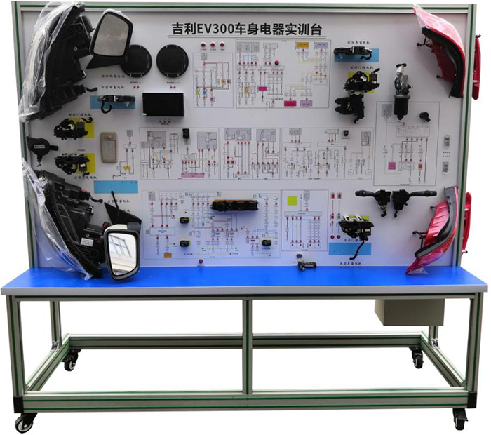 車身電器實訓(xùn)臺該設(shè)備采用(高速)純電動汽車車身電器系統(tǒng)實物為基礎(chǔ),充分展示純電動汽車儀表系統(tǒng)、燈光系統(tǒng)、雨刮系統(tǒng)、喇叭系統(tǒng)、低壓電源電器系統(tǒng)、電動車窗系統(tǒng)、電動門鎖、音響系統(tǒng)等低壓電器系統(tǒng)的組成結(jié)構(gòu)和工作過程。適合于各類院校對純電動車車身電器系統(tǒng)理論和維修實訓(xùn)的拆裝與維護、結(jié)構(gòu)與原理認知、系統(tǒng)操作、功能動態(tài)演示、故障檢測與診斷教學(xué)需要。