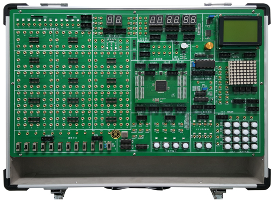 數(shù)字電路、EDA技術(shù)實(shí)驗(yàn)設(shè)計(jì)由鋁木合金箱體、開關(guān)電源、常用信號(hào)源、常用模數(shù)接口、人機(jī)接口、接插式FPGA下載板和實(shí)驗(yàn)電路區(qū)等組成。其中信號(hào)源由高性能單片機(jī)產(chǎn)生,穩(wěn)定可靠。全部的實(shí)驗(yàn)用信號(hào)線的連接采用高可靠杜邦線和單根2號(hào)插針線,避免接觸不良現(xiàn)象反生。擴(kuò)展設(shè)計(jì)的CPLD/FPGA開發(fā)板為用戶開展創(chuàng)新設(shè)計(jì)提供了良好的硬件平臺(tái)。本實(shí)驗(yàn)箱適用于本?圃盒K须婎惡头请婎悓I(yè)《數(shù)字電子技術(shù)》、《數(shù)字系統(tǒng)設(shè)計(jì)》、《EDA技術(shù)設(shè)計(jì)》等課程的實(shí)驗(yàn)、實(shí)訓(xùn)和創(chuàng)新設(shè)計(jì),有出版社出版的配套教材。