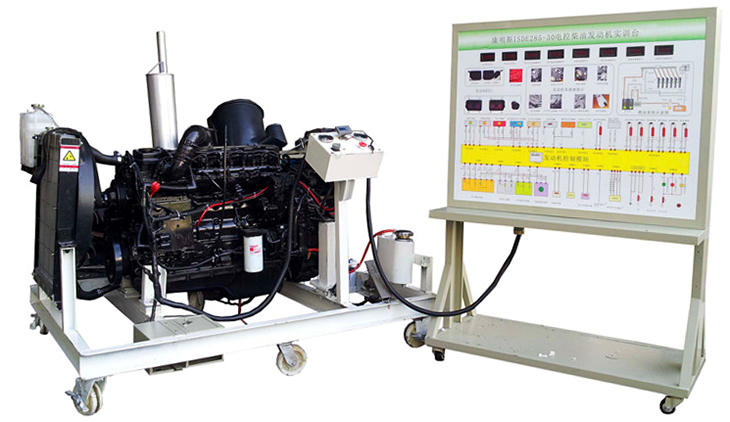 柴油發(fā)動(dòng)機(jī)總成、組合儀表、發(fā)動(dòng)機(jī)控制單元、散熱系統(tǒng)(水箱、風(fēng)扇、上下水管)、排氣系統(tǒng)、進(jìn)氣系統(tǒng)(進(jìn)氣軟管、空氣濾清器總成)、原車電路原理圖板及檢測(cè)端子面板、蓄電池、電源總開(kāi)關(guān)、燃油箱、油水分離器、油門(mén)踏板裝置、可移動(dòng)機(jī)臺(tái)架、臺(tái)架高溫及轉(zhuǎn)動(dòng)等部位加裝防護(hù)裝置等。