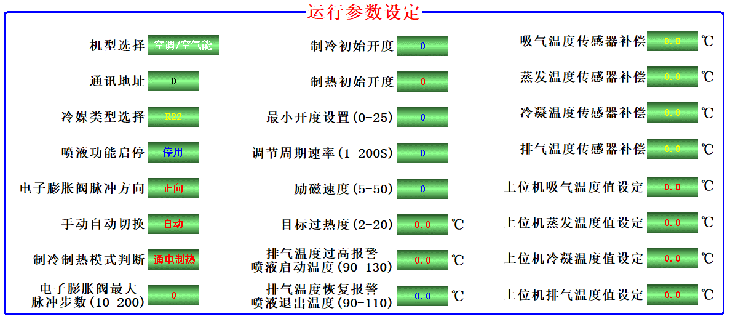 5. 動畫模式:觸摸屏或軟件連接模式下:可顯示壓縮機排氣溫度、吸氣溫度、冷凝溫度、蒸發(fā)溫度,可根據(jù)溫度實時調(diào)節(jié)機組過冷度。過熱度。