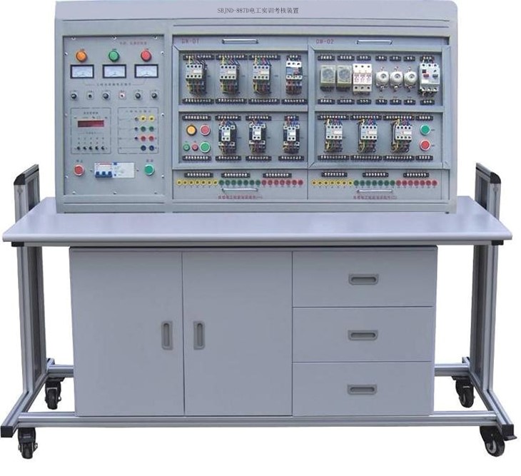 電工技能實(shí)訓(xùn)考核裝置是根據(jù)電工實(shí)訓(xùn)考核的實(shí)際情況而設(shè)計的集技能培訓(xùn)、培訓(xùn)考核鑒定于一體的多功能設(shè)備,以標(biāo)準(zhǔn)的配電柜為主柜,合理利用柜體的雙面空間.科學(xué)地布置各種低壓電氣設(shè)備。