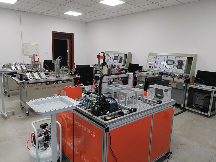 機(jī)電一體化實(shí)驗(yàn)實(shí)訓(xùn)裝置、PLC與自動化實(shí)驗(yàn)實(shí)訓(xùn)室設(shè)備自動化生產(chǎn)線實(shí)訓(xùn)室、氣動控制實(shí)訓(xùn)室、伺服控制實(shí)訓(xùn)室、過程控制實(shí)訓(xùn)室、仿真控制實(shí)訓(xùn)室、自動化創(chuàng)新工作室等;能提供可編程控制技術(shù)、交流伺服驅(qū)動技術(shù)、人機(jī)界面技術(shù)、多自由度機(jī)械臂技術(shù)、網(wǎng)絡(luò)控制技術(shù)、自動化物流管理、虛擬仿真等自動化領(lǐng)域核心技術(shù)的實(shí)踐訓(xùn)練;教學(xué)項(xiàng)目涵蓋單項(xiàng)技能訓(xùn)練、綜合技能提升、創(chuàng)新設(shè)計(jì)能力培養(yǎng)、自動化新技術(shù)應(yīng)用等多個層面,為滿足學(xué)生技能訓(xùn)練、教師實(shí)踐能力培養(yǎng)、企業(yè)員工培訓(xùn)、技術(shù)研發(fā)與服務(wù)提供了有力保障。機(jī)電一體化實(shí)驗(yàn)實(shí)訓(xùn)平臺、PLC與自動化實(shí)訓(xùn)室設(shè)備是《PLC控制技術(shù)》、《變頻器控制技術(shù)》、《組態(tài)控制技術(shù)》等課程的教學(xué)實(shí)驗(yàn)實(shí)訓(xùn)、課程設(shè)計(jì)、自動化綜合實(shí)訓(xùn)及創(chuàng)新設(shè)計(jì)等實(shí)踐基地,也是技能培訓(xùn)的教學(xué)平臺。滿足學(xué)生進(jìn)行PLC實(shí)訓(xùn)、課程設(shè)計(jì)、畢業(yè)設(shè)計(jì)等需求。機(jī)電一體化實(shí)驗(yàn)實(shí)訓(xùn)平臺、PLC與自動化實(shí)訓(xùn)室設(shè)備主要功能是為學(xué)生提供可編程邏輯控制器(PLC)的相關(guān)實(shí)訓(xùn)與實(shí)訓(xùn)操作環(huán)境,幫助學(xué)生深入理解PLC的工作原理、編程方法、以及在工業(yè)自動化領(lǐng)域的應(yīng)用。