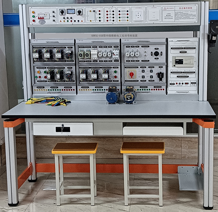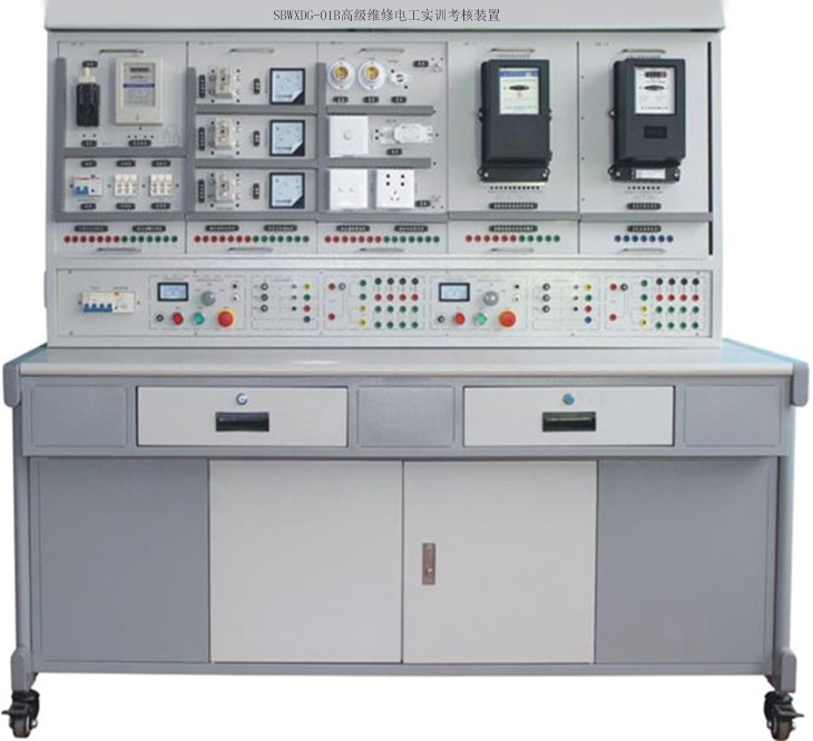 電氣安裝與維修實訓考核裝置是根據(jù)工廠電氣安裝和室內(nèi)電氣安裝等維修 電工和電氣安裝工實訓鑒定要求開發(fā)的一種通用實訓平臺。 適合于各類職業(yè)院校 和技工學校維修電工、 電氣安裝工、水電工等有電氣實訓要求的相關專業(yè)的作為 公共實訓平臺使用。 采用鋼制網(wǎng)孔板和鋼制專用型材組接而成,安裝有自鎖式腳輪,方便移動和使用。裝 置表面噴塑,色彩穩(wěn)重氣派。電氣安裝與維修實訓裝置設計高度以人站在一級人字梯即可方便操作的高度,既安 全又能使使用者感受到施工現(xiàn)場環(huán)境。 橫向、 叢向?qū)挾群线m, 可以模擬現(xiàn)場線路的轉(zhuǎn)向布置。